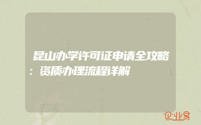 - 昆山办学许可证申请全攻略:资质办理流程详解
