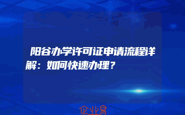 - 阳谷办学许可证申请流程详解:如何快速办理?