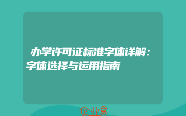 - 办学许可证标准字体详解:字体选择与运用指南一、引言随着教育行业的迅速发展,办学许可证的规范使用和管理变得日益重要。其中,字体的选择与运用,不仅是展示学校品牌形象的关键,更是许可证合法性、严肃性的体现。本文将对办学许可证标准字体的选择
