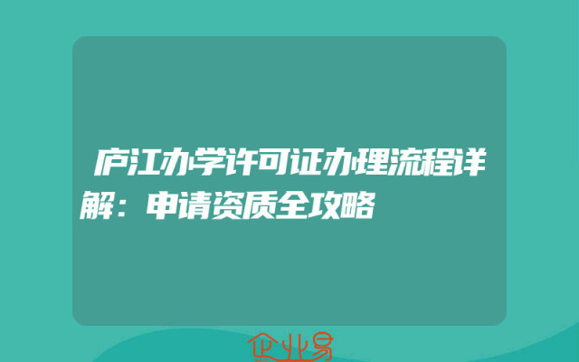 - 庐江办学许可证办理流程详解:申请资质全攻略