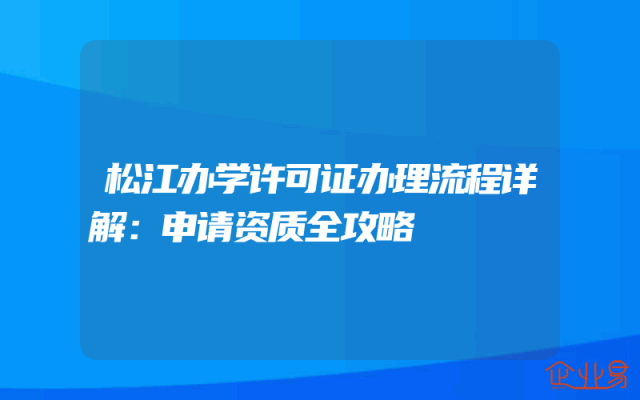 - 松江办学许可证办理流程详解:申请资质全攻略