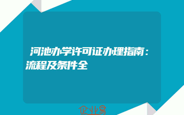 - 河池办学许可证办理指南:流程及条件全解析一、引言随着教育行业的快速发展,越来越多的教育机构涌现出来,为满足社会需求提供了多样化的教育服务。在河池地区,办学许可证是开办教育机构的必备证件,它为教育质量提供了保障。本文将详细解析河池办学许可证的