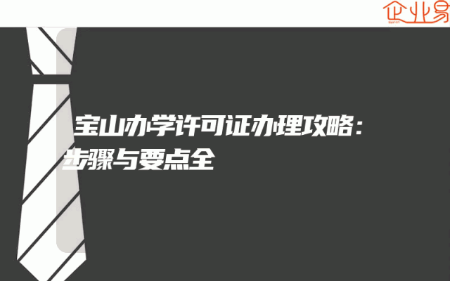 - 宝山办学许可证办理攻略:步骤与要点全解析在教育行业发展日新月异的当下,越来越多的教育机构和企业选择在宝山地区办学。若您打算在宝山开设学校或其他教育机构,办学许可证的办理则是不可或缺的一环。本文将