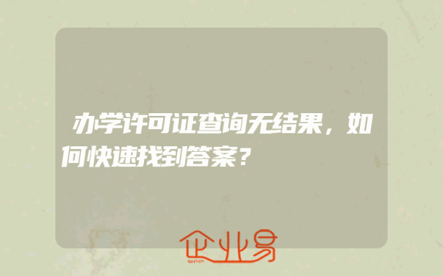 - 办学许可证查询无结果,如何快速找到答案一、了解查询途径与平台首先,面对办学许可证查询无结果的情况,需要明确查询的途径和平台是否正确。随着信息化的发展,多数许可证信息可以通过政府官方网站、教育部门的公示平台进行查询。了解这些信息有助于