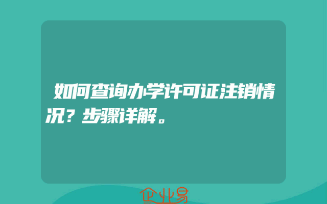 - 如何查询办学许可证注销情况?步骤详解一、了解办学许可证办学许可证是教育机构合法办学的凭证,若该机构终止办学或变更相关事项,需办理许可证的注销手续。因此,查询办学许可证的注销情况,是对教育机构运营状态的一种重要了解途径。二、查询途径1.官方教