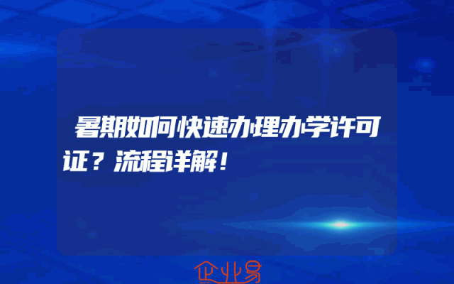 - 暑期如何快速办理办学许可证?流程详解!了解办学许可证办学许可证是我国针对教育机构的一种重要资质认证,是教育机构合法运营的凭证。随着教育培训市场的不断发展,办理办学许可证已成为教育培训机构开班的必要条件。特别是在暑期,很多教育机构都会选择此时