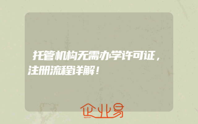 - 托管机构无需办学许可证,注册流程详解!一、托管机构无需办学许可证的背景在当今社会,随着教育行业的快速发展,各类教育机构层出不穷。其中,托管机构作为为学生提供课后看护服务的机构,近年来也受到了广泛关注。与传统教育机构不同,托管机构主要