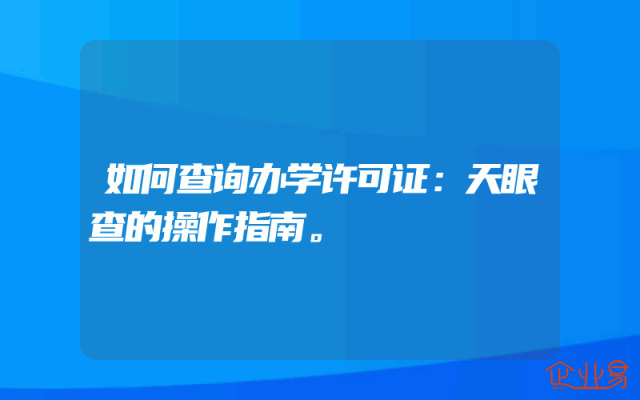 - 如何查询办学许可证:天眼查的操作指南一、了解办学许可证的重要性办学许可证是教育培训机构合法开展教育活动的凭证,对于想要了解学校资质或从事教育培训行业的人来说,查询办学许可证是必不可少的一步。通过天眼查等公开信息平台,我们可以方便地查