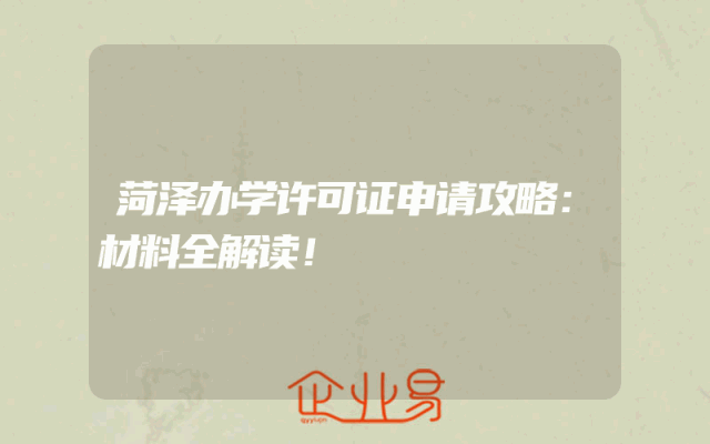 - 菏泽办学许可证申请攻略:材料全解读一、引言随着教育行业的快速发展,越来越多的教育机构在菏泽地区设立学校或培训机构。在菏泽地区办学,首先需要通过申请获得办学许可证。本文旨在详细解读菏泽办学许可证申请的材料要求,帮助申请者全面了解申请流