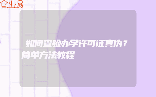 - 如何查验办学许可证真伪?简单方法教程一、了解办学许可证基本知识办学许可证是教育机构合法运营的凭证,其真伪关系到学校的合法性和教育质量。在查验办学许可证真伪之前,我们需要对办学许可证的基本信息有所了解,包括许可证的颁发机构、有效期限、