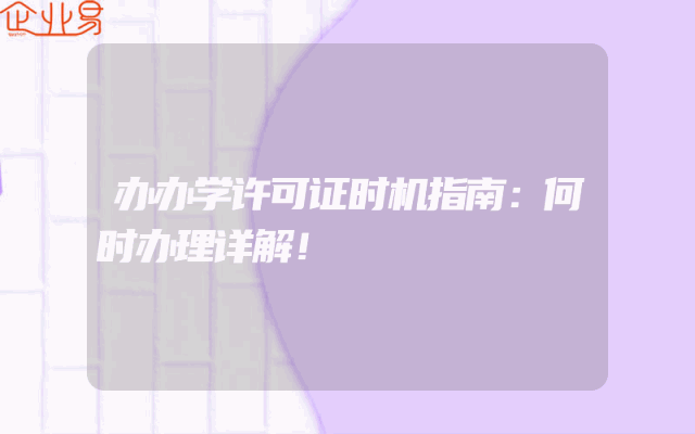 - 办办学许可证时机指南:何时办理详解!一、了解办学许可证的重要性随着教育行业的迅速发展,办学许可证成为了教育机构合法运营的重要凭证。这一证书不仅体现了学校的教育资质,更是保障学生权益、维护教育市场秩序的必备条件。二、办学许可证的办理时