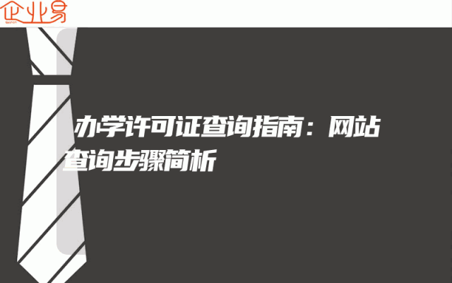 - 办学许可证查询指南:网站查询步骤简析一、引言随着教育信息化的发展,各类教育机构纷纷涌现。对于家长和学生来说,选择一所合法合规的学校至关重要。其中,查询办学许可证是验证学校是否具备合法办学资质的重要依据。本文将简要分析如何通过网站查询