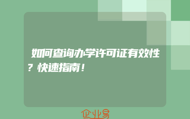- 如何查询办学许可证有效性?快速指南!一、了解办学许可证的重要性办学许可证是教育机构合法运营的必要条件之一,它证明了教育机构符合国家教育法律法规的要求,具备了提供教育服务的资质。因此,查询办学许可证的有效性对于保障教育质量、维护学生权益具有重