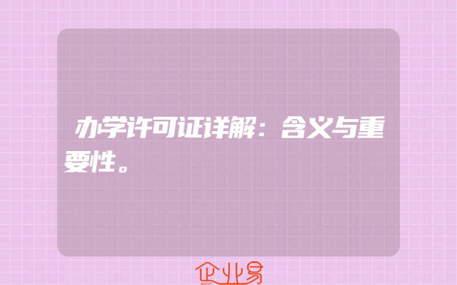 - 如何查询办学许可证编号?步骤详解!在当今教育市场蓬勃发展的环境下,办学许可证的获取及编号查询显得尤为重要。它关乎教育的合法性和正规性,确保教育服务质量的合法性及教育的透明管理。那么如何查询办学许可证编号呢?以下是详细的步骤。一、了解