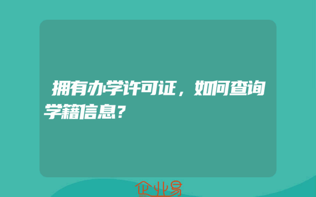 - 拥有办学许可证,如何查询学籍信息?一、了解办学许可证与学籍信息的重要性在教育行业中,办学许可证是衡量一所学校合法性和教育质量的重要标志。而对于学生及家长来说,学籍信息则是关系到学生学习权益、升学路径以及个人成长记录的重要依据。因此,了解如何