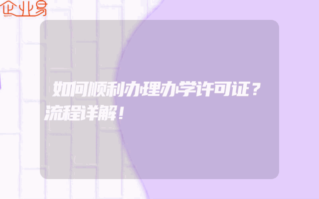 - 如何顺利办理办学许可证?流程详解!一、了解办学许可证的重要性及政策背景办学许可证是从事教育培训行业的必备资质。随着教育行业的快速发展,国家对于教育行业的监管也越来越严格。因此,想要顺利从事教育培训行业,必须首先了解办理办学许可证的重要性和相