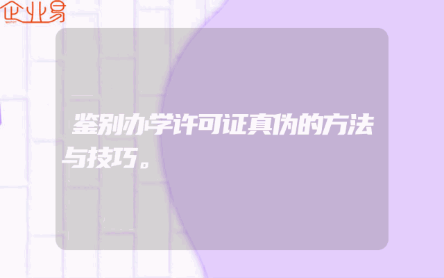 - 鉴别办学许可证真伪的方法与技巧一、了解办学许可证基本常识鉴别办学许可证真伪的第一步,是了解办学许可证相关的基本常识。办学许可证是教育类机构开展教育培训业务的重要凭证,其内容包括机构名称、地址、负责人、办学内容等关键信息。应了解当地教育主管部