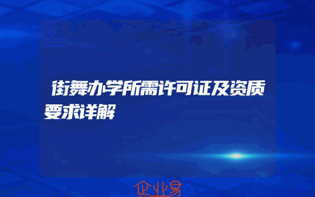 - 街舞办学所需许可证及资质要求详解一、概述随着街舞文化的日益普及,越来越多的机构和个人希望涉足街舞教育领域。然而,要想合法经营街舞学校或培训机构,了解所需的许可证及资质要求至关重要。这不仅关乎机构的合规运营,也保障了学生的权益。二、教育类许可