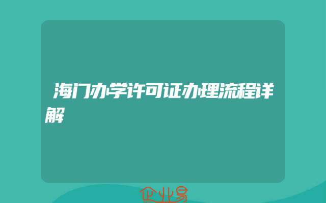- 海门办学许可证办理流程详解一、了解办学许可证相关政策和要求在准备办理海门办学许可证之前,首先需要了解相关的政策和要求。这包括但不限于教育部门的政策法规、办学许可证的办理条件、申请材料以及流程等。通过查阅官方网站、教育部门的公告或者咨询相关专