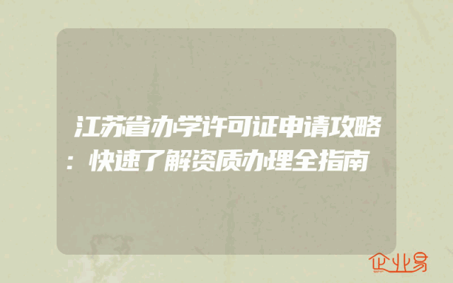 - 江苏省办学许可证申请攻略:快速了解资质办理全指南