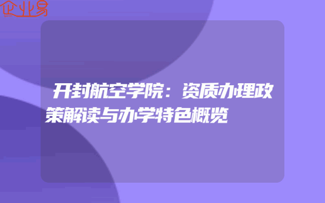 - 开封航空学院:资质办理政策解读与办学特色概览