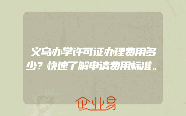 - 义乌办学许可证办理费用多少?快速了解申请费用标准。