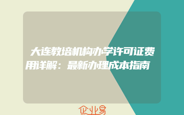 - 大连教培机构办学许可证费用详解:最新办理成本指南