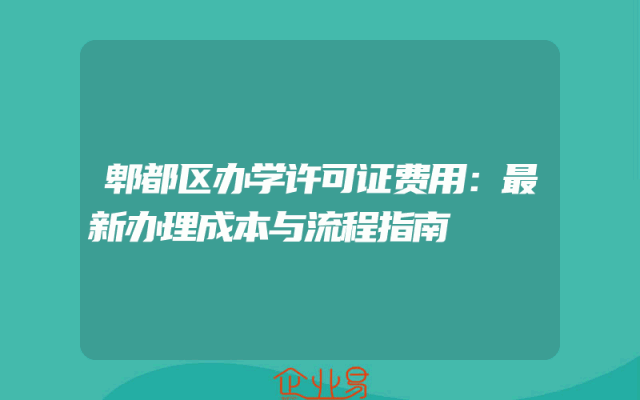- 郫都区办学许可证费用:最新办理成本与流程指南
