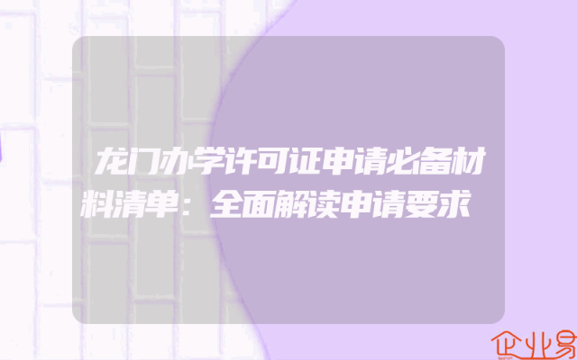 - 龙门办学许可证申请必备材料清单:全面解读申请要求