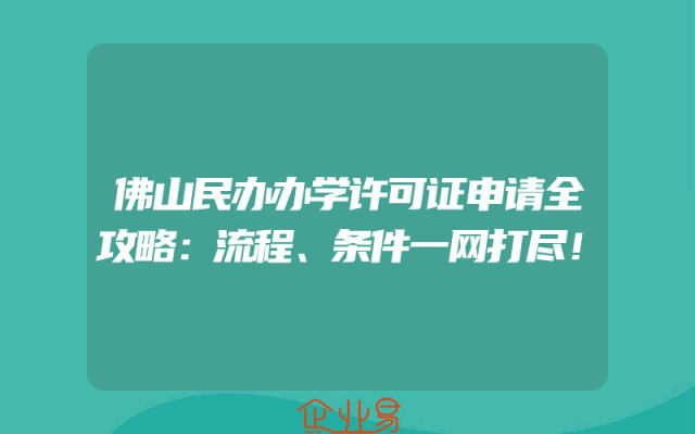 - 佛山民办办学许可证申请全攻略:流程、条件一网打尽!