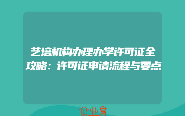 - 艺培机构办理办学许可证全攻略:许可证申请流程与要点