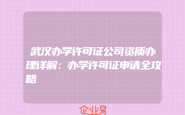 - 武汉办学许可证公司资质办理详解:办学许可证申请全攻略