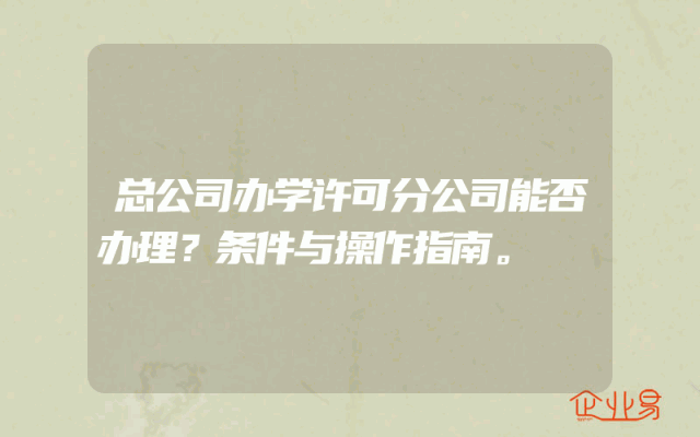 - 总公司办学许可分公司能否办理?条件与操作指南。