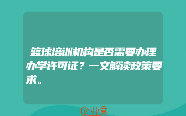 - 篮球培训机构是否需要办理办学许可证?一文解读政策要求。