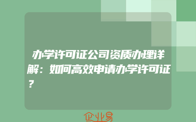 - 办学许可证公司资质办理详解:如何高效申请办学许可证?