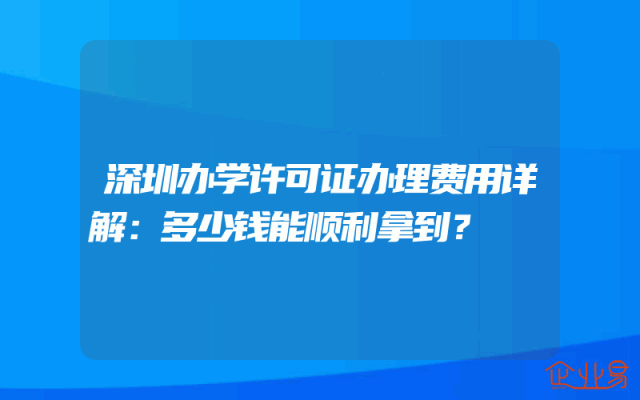 - 深圳办学许可证办理费用详解:多少钱能顺利拿到?
