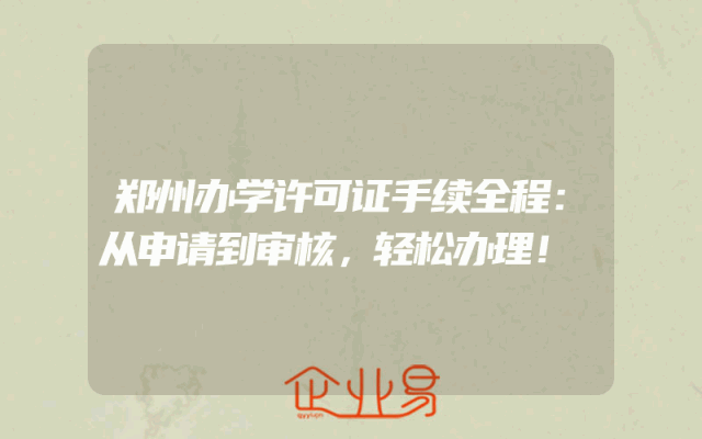 - 郑州办学许可证手续全程:从申请到审核,轻松办理!