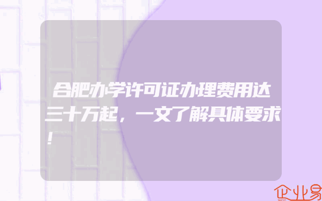 - 合肥办学许可证办理费用达三十万起,一文了解具体要求!