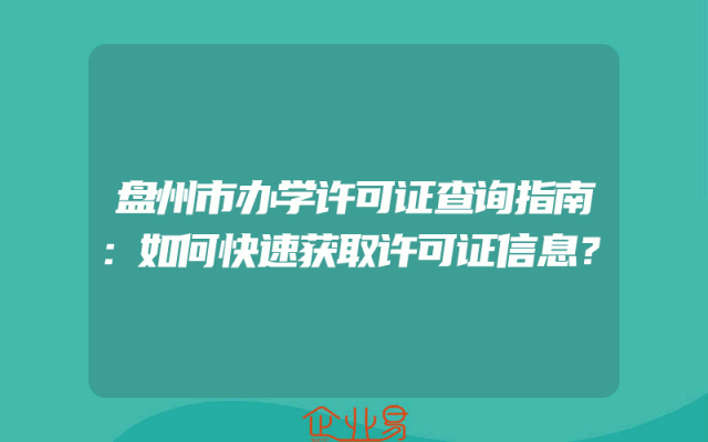 - 盘州市办学许可证查询指南:如何快速获取许可证信息?