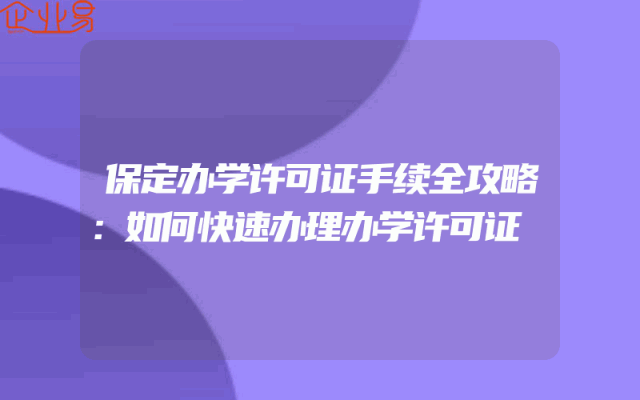 - 保定办学许可证手续全攻略:如何快速办理办学许可证