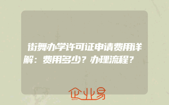 - 街舞办学许可证申请费用详解:费用多少?办理流程?