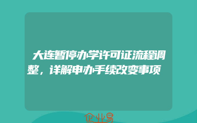 - 大连暂停办学许可证流程调整,详解申办手续改变事项