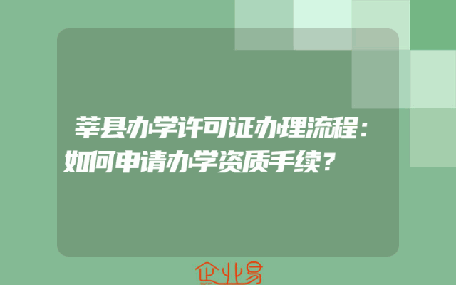 - 莘县办学许可证办理流程:如何申请办学资质手续?