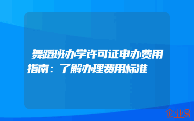 - 舞蹈班办学许可证申办费用指南:了解办理费用标准