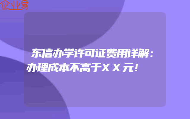 - 东信办学许可证费用详解:办理成本不高于XX元!