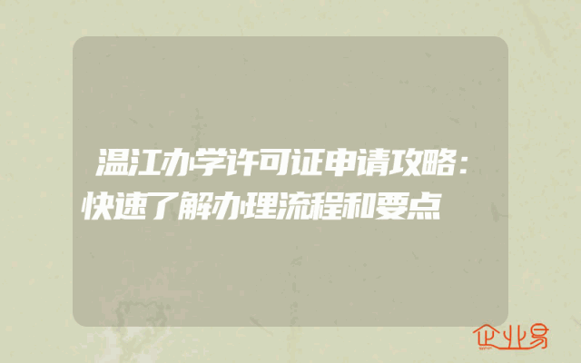 - 温江办学许可证申请攻略:快速了解办理流程和要点
