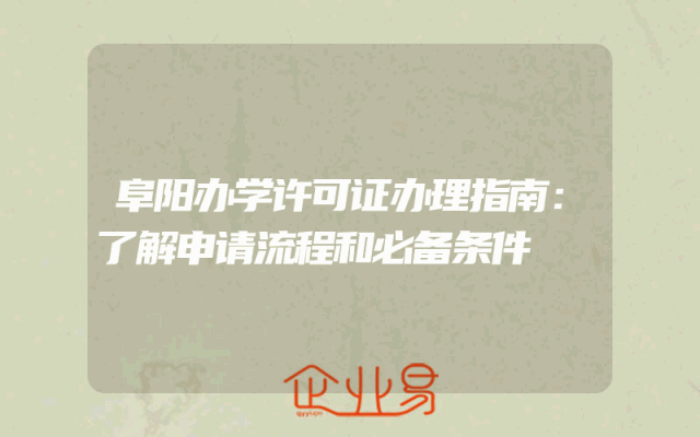 - 阜阳办学许可证办理指南:了解申请流程和必备条件