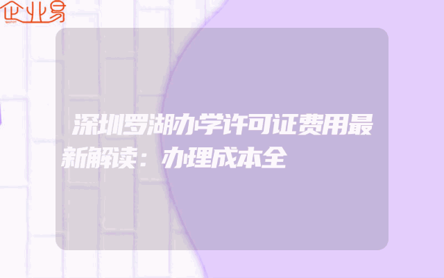 - 深圳罗湖办学许可证费用最新解读:办理成本全