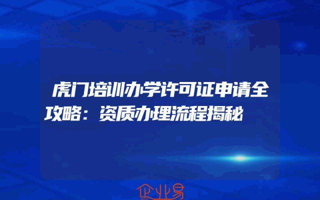 - 虎门培训办学许可证申请全攻略:资质办理流程揭秘
