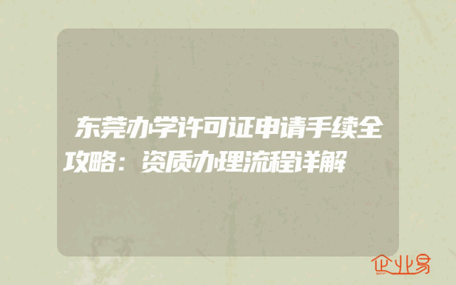 - 东莞办学许可证申请手续全攻略:资质办理流程详解